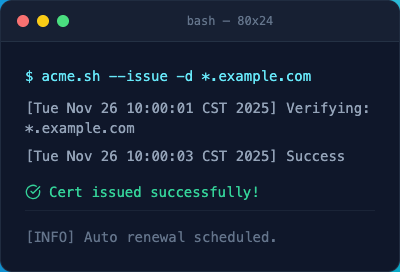 无需人工干预,在证书到期前自动完成续签,彻底消除因证书过期导致的业务中断风险。